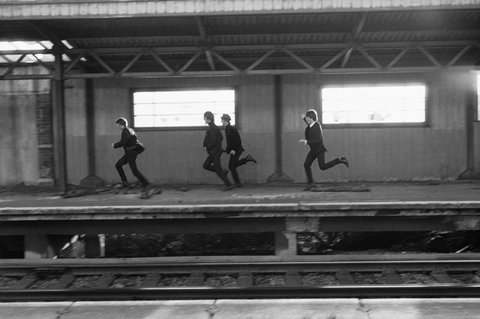 LONDON — The Beatles run on a train platform during the filming of A Hard Day's Night.