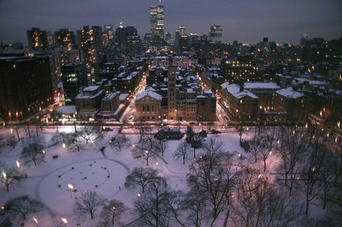 NEW YORK — A downtown view of a snowy Manhattan from Washington Square Park, 1994.